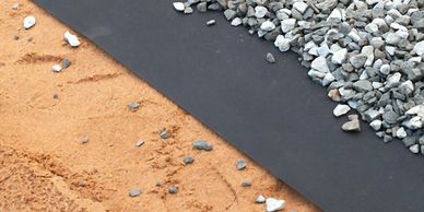 To ensure proper surface drainage and elevations, we set our grades and install any necessary drainpipes and downspouts. We then backfill and compact the trenching and install a layer of geotextile fabric which prevents soil migration and settling.