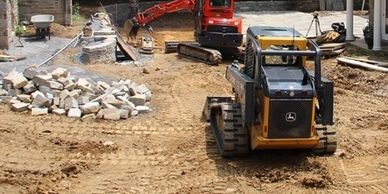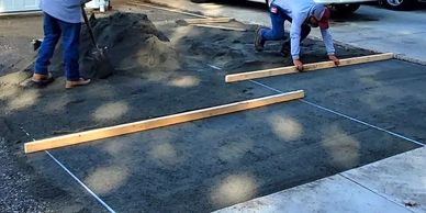 First, we mark the area for existing utilities. Next, our crews remove your existing hardscaping, including plants or other materials, being careful not to damage any existing utility lines, irrigation systems, or plants. We typically excavate 7” from the final grade for patios and 10” for driveways, which gives us adequate room for base rock, bedding sand, and pavers.