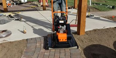 Now, we’re ready to install the Class II base over the entire area, which creates a dense foundation to install the pavers. Using a plate compactor, we compact the class II base to an ideal density of 98%.